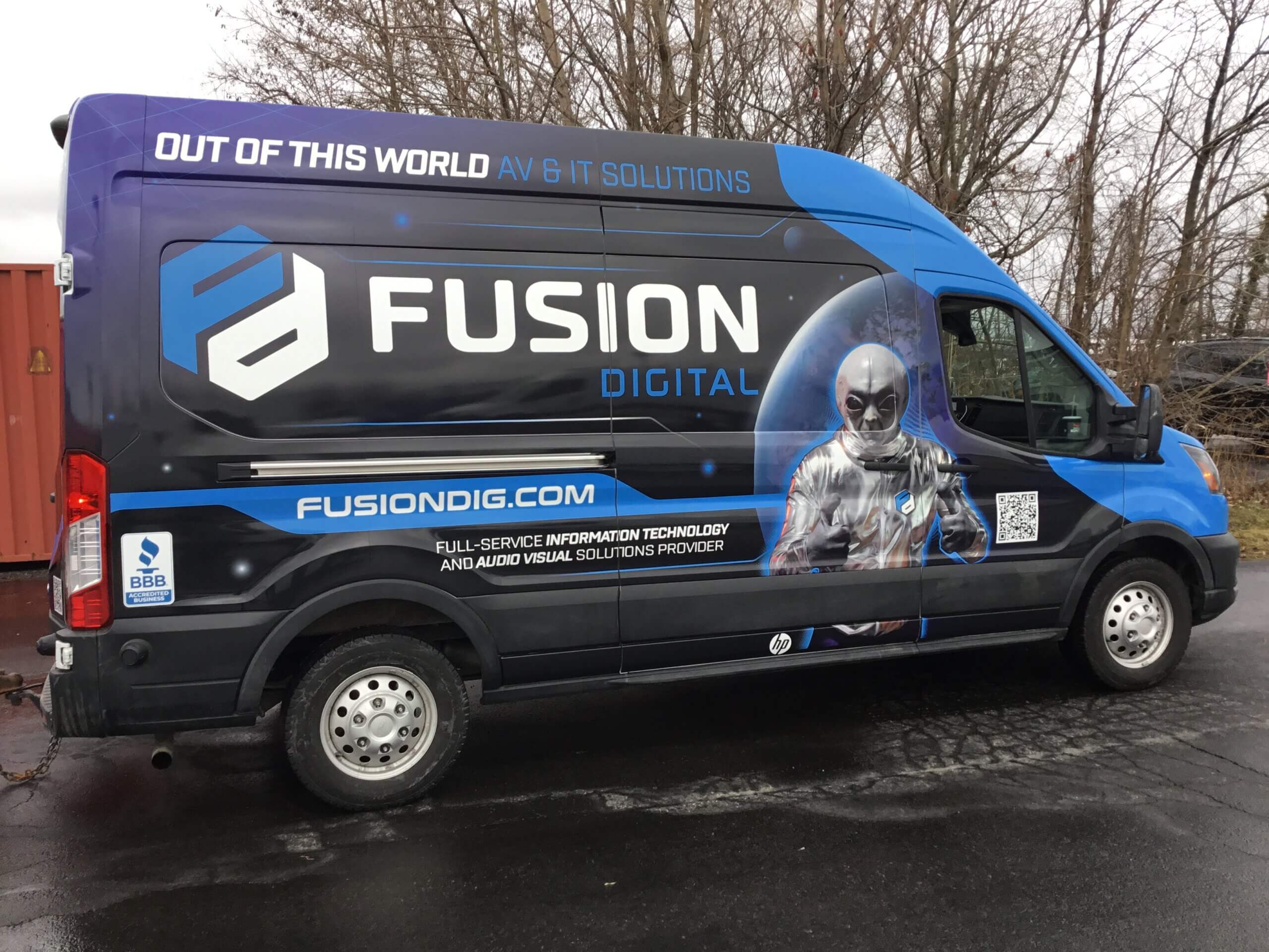 A vehicle wrap consists of covering a vehicle completely (full wrap) or partially (partial wrap) in an adhesive digital vinyl material. We print your mobile advertising vehicle wrap on only the highest quality vinyl (3M high performance media) then the printed vinyl is covered with an overlaminate to make it scratch and chemical resistant, and to give it UV protection. Then our experienced installers go to work, carefully applying your advertisement to your vehicles, fitting and conforming the vinyl to the curves and contours of your vehicle.
